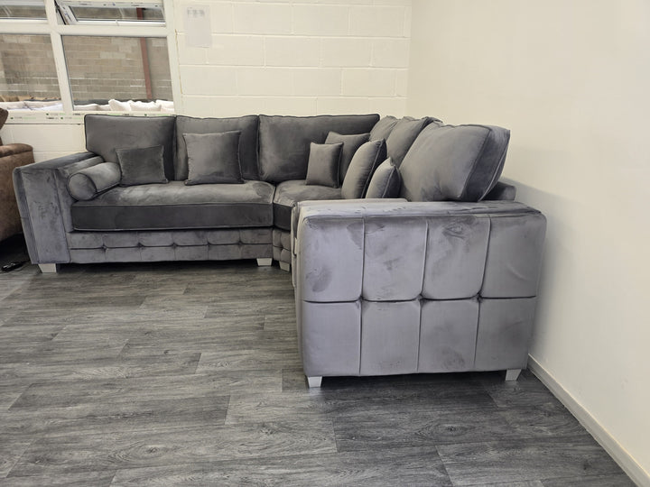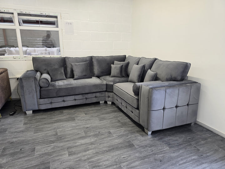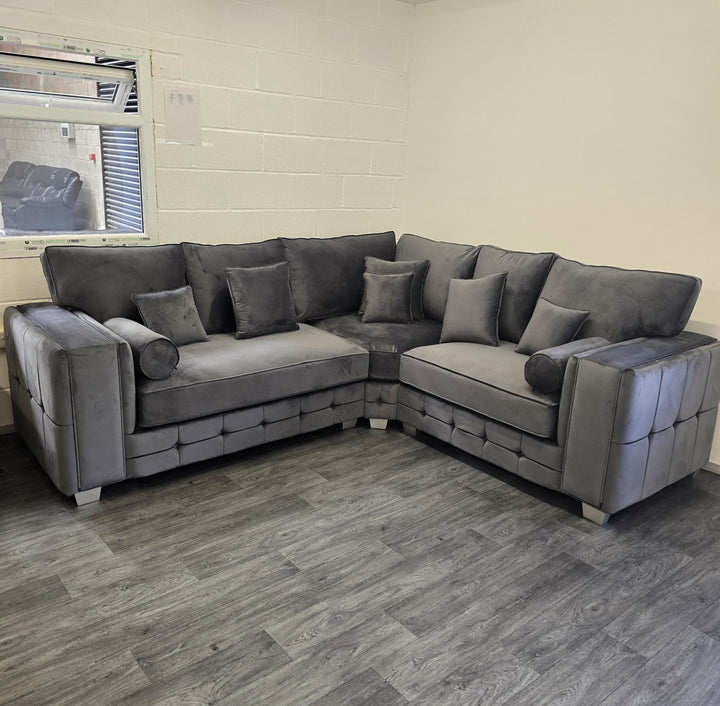 Madrid Corner Sofa Cubed Design - Steel Plush Fabric