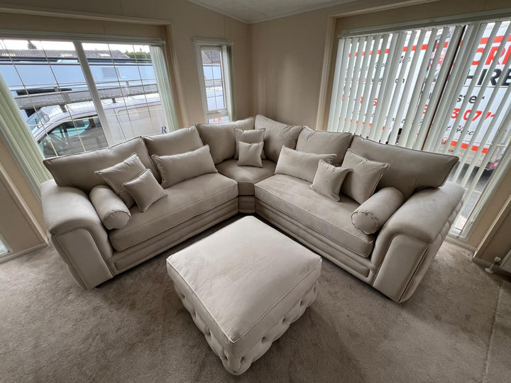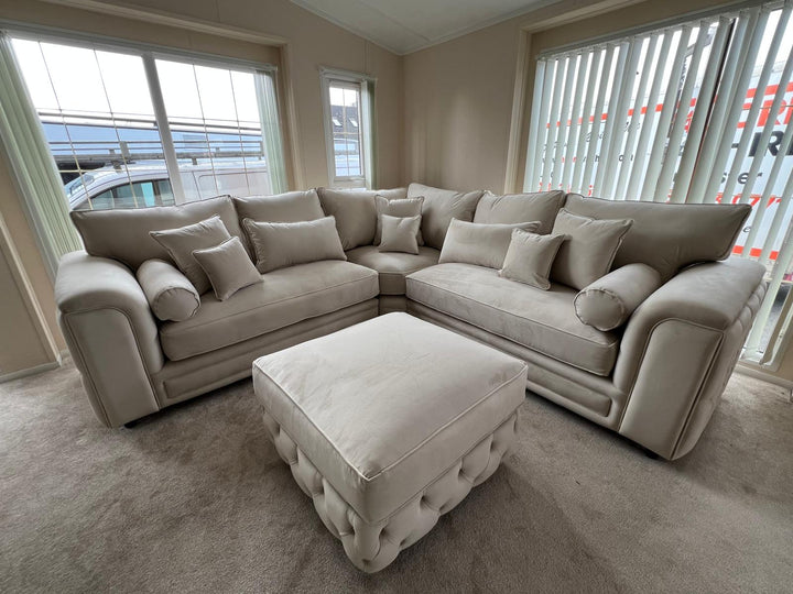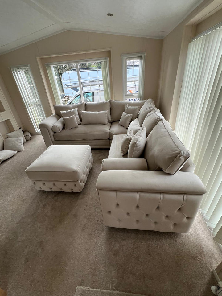 Zara Chesterfield Corner Sofa – Cream Plush Velvet | Sturdy Sitting Ltd