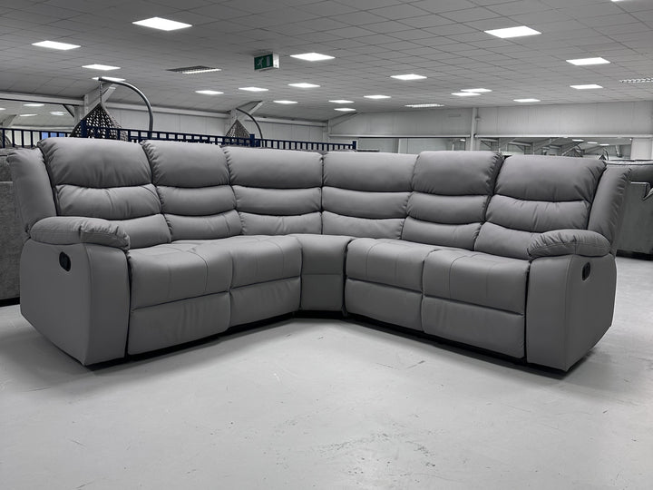 Roma Leather Corner Recliner with Cupholders (Light Grey)
